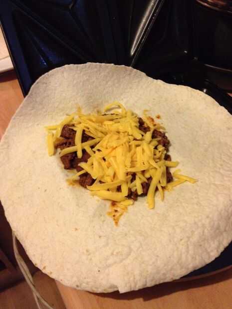 Añada el queso, es importante que te cubren el centro de la partición como la tortilla es muy fina y el queso funcionará como "pegamento" para ayudar a este borde se fusionan