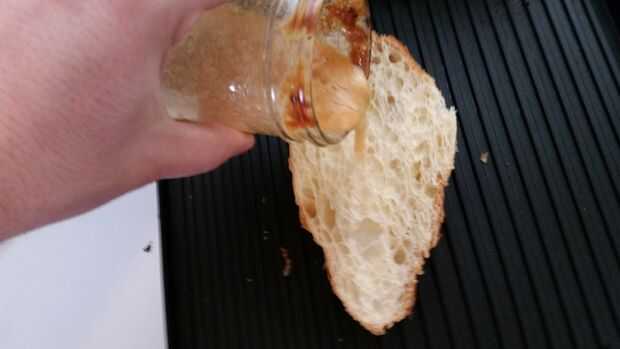 Si se vierte lentamente sobre el pan, debería funcionar, pero fácilmente puede derramar. También puede considerar dejar que empape para arriba en un recipiente poco profundo. Simplemente vierte en y perdió tal vez 1/8 de mi huevo a la parrilla.
