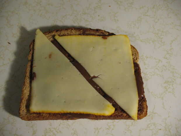 Unte abundante Nutella sobre el pan. Cubra con queso.