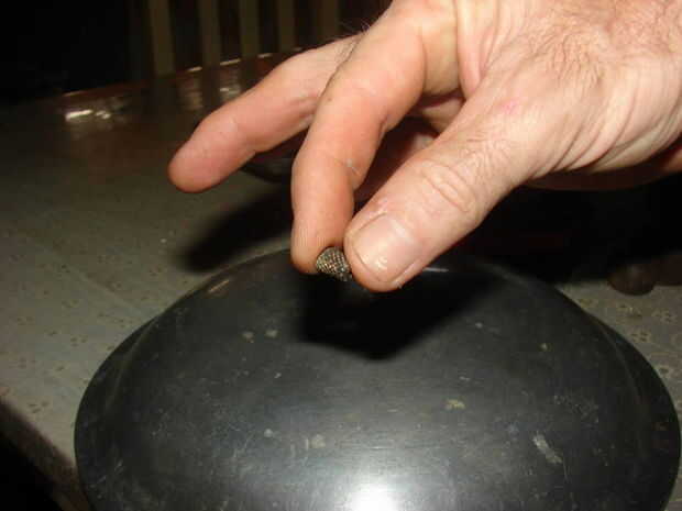 2) Inserte un manguito acanalado para mango de la paleta de asador.  Mi manga se convirtió en suelta después del montaje así que puse algunos epoxy acero alrededor y hacia abajo en los lados de la manga para estabilizarlo.