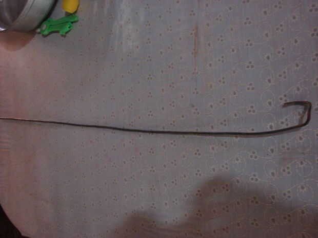 3) tomar #8 galvanizar alambre y corte a la longitud.  4 ½" ángulo recto de la curva.  Encontré este un tendido alrededor en mi chatarra.  He enderezado hacia fuera y doblada cuando fui a lo largo.  Empecé con una curva de 5 pulgadas y después de conseguir la paleta en su lugar fue capaz de cortar a 4 1/2".