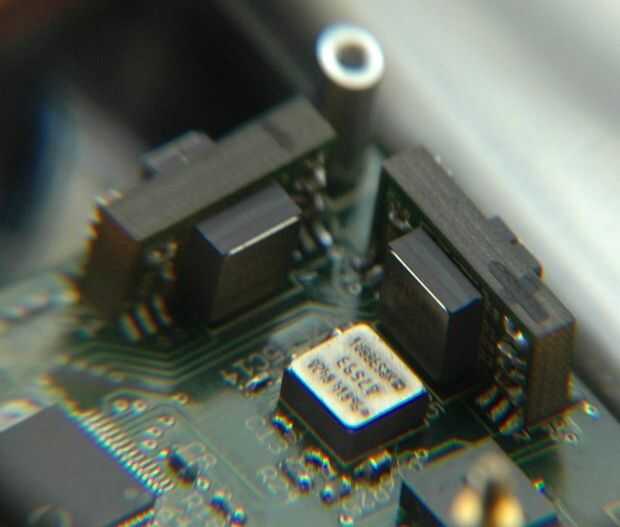 Asegúrese de que todas las bolas estén conectados y que el componente se une fuertemente a la PCB. Esta imagen muestra 3 de las BGAs reajustados integrados juntos en una unidad de medición inercial de 3 ejes.