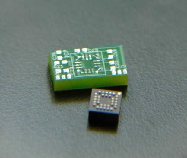 En este ejemplo estoy trabajando con un ADXRS300 que es un 1 eje girómetro hecha por Analog Devices. Viene en un paquete de matriz de rejilla de bola con las bolas ya Unidas a la parte inferior del componente. El PCB deben ser diseñados con almohadillas para cada una de las bolas, junto con una seda proyectado contorno para hacer más fácil alinear el componente (que es crítico cuando usted realmente no puede ver las pastillas). También, duh, asegúrese de que usted marque la ubicación del Pin 1.