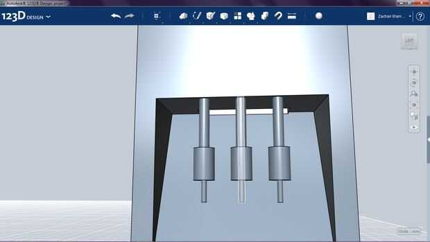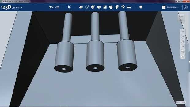 5. crear tres cilindros más (radio: 0.25, altura: tiempo suficiente para que pase a través de un conjunto cilíndrico) y uno en cada uno de los conjuntos cilíndricos.
