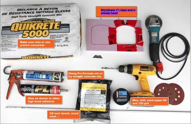 -Concreto. Mezclar su propio o adquirir una pre mezcla. Utilizamos Quickrete 5000