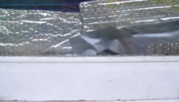 Grapas mantenga el aislamiento a la madera. Cinta adhesiva mantiene el resto.