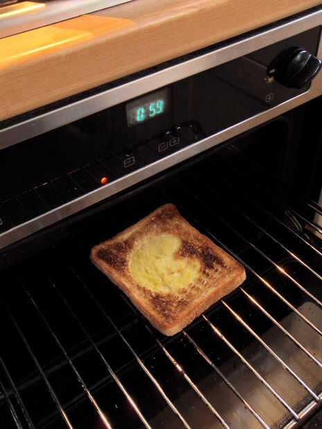 Difundirlo bonito y grueso. La margarina dejará el pan tostado y dejar un remiendo más ligero.