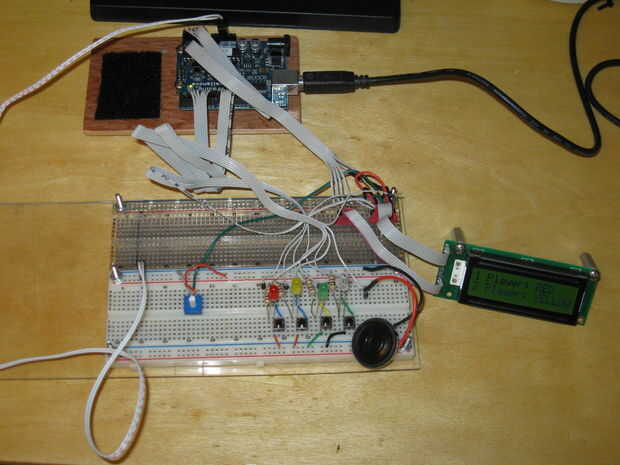 El juego de 1 jugador es tu básica Simon Game. He añadido 4 niveles de dificultad a él, dándole opciones para cuántas rondas que desea reproducir. Su entonces dada una secuencia de luces para imitar intermitentes. Cada uno redondo agregar un flash extra para la secuencia. Si usted puede completar el número de vueltas ganas.