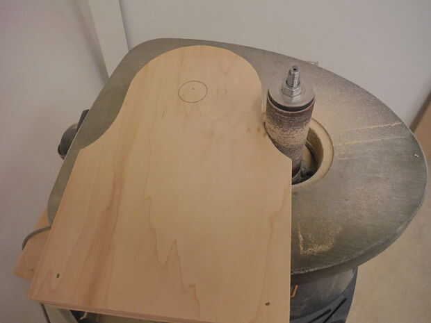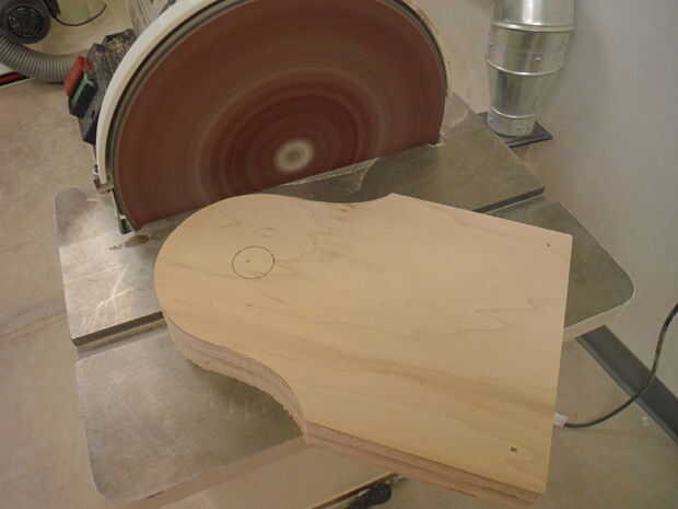 Usando la combinación disco belt sander conseguir tan cerca como desee a la línea de la plantilla dibujada anteriormente. Los lados festoneados no pueden lijarse de esa manera lo tienes que pasar la lijadora de husillo. Elija un eje grande que ayudará a acelerar el proceso como más superficie está desgastado a la vez. Hacer que sierra hoja marcas han desaparecido, lo hace para un producto de mejor aspecto.