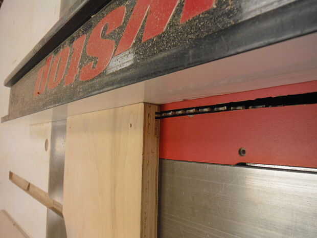 Tómese su tiempo y colarse en el tamaño adecuado, como se puede ver en la imagen. Hice unos cuantos cortes en el trozo puntiagudo que se muestra. Una vez que usted lo consigue derecho usar la pieza que hizo como una plantilla para ajustar la altura y espaciado de la guía para las ranuras. Puede ser vale la pena ahorrar para un futuro proyecto similar cuando más desecho presenta :)