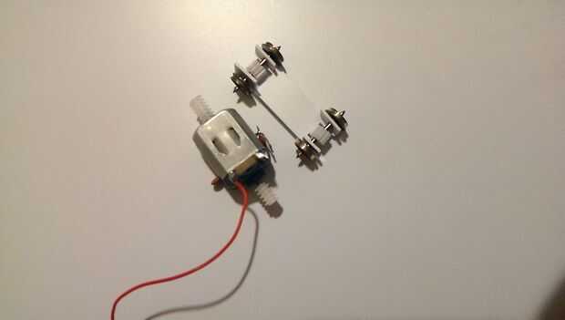 Entonces usé cog y montaje del engranaje de gusano para transferir movimiento del motor a las ruedas. Tenía un viejo reproductor de CD motor ahí estaba perfectamente formado para esto.