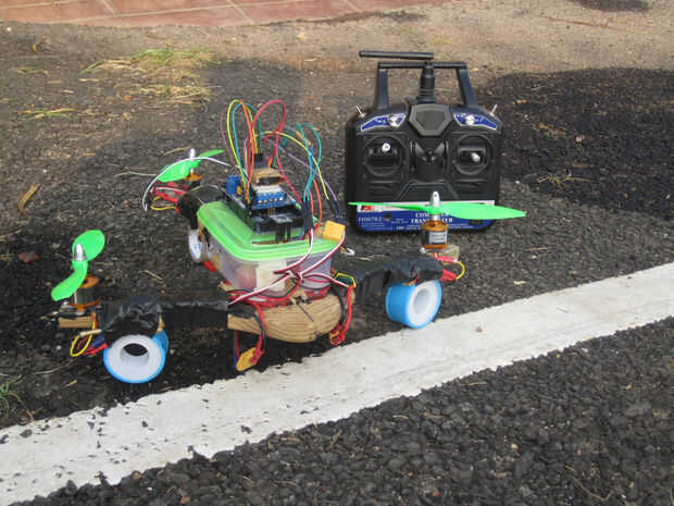 Así que construí una Tricopter. Su rápida lleva lo suficiente como para apoyar el sistema de fpv y es barato.