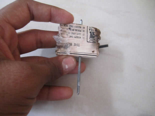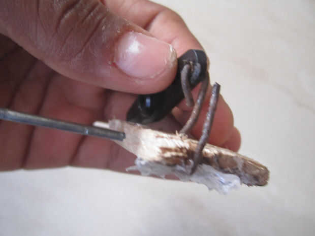 Así que lo que hice fue que martilló un clavo en un pedazo de madera.