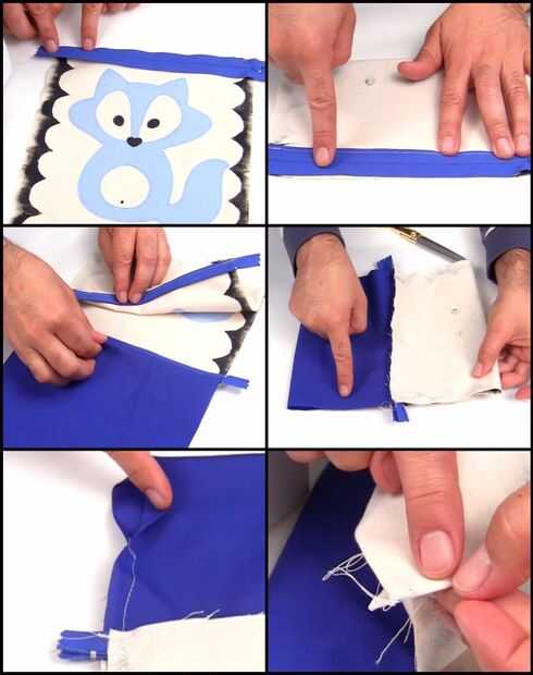Doble la bolsa y coser la cremallera hacia el otro lado