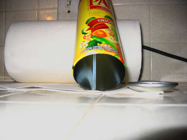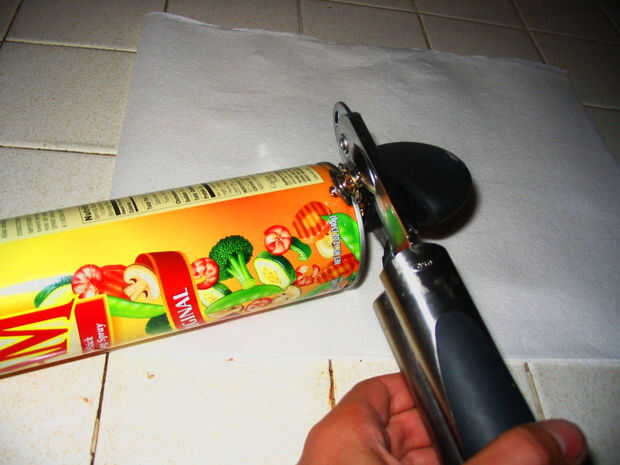 Si sólo tienes un aerosol puede, quiera practicar esta técnica en la parte superior de un refresco o cerveza puede. Para cortar abierto, coloque el abrelatas en el borde inferior, para que la cuchilla está apenas debajo del borde. Esto asegurará que la costura no es visible en el producto terminado. Empezar a cortar a lo largo del borde inferior. No se olvide de ir lentamente, permanecer lo más cerca del borde como sea posible y usar sólo la cantidad de fuerza absolutamente necesario. El corte debe ser muy suave. Una vez que la parte inferior está apagado, enjuague y seque el interior de la can. También debe arena menor dentro de la parte de preparación para pegar más adelante en el proceso.