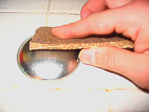 Fondo de la arena las dos superficies a unir. Mientras que el pegamento en la botella está todavía húmedo, con cuidado, enrosque la tapa sobre ella. Aplique pegamento o epoxi a ambas superficies (metal y tapa inferior). Seguir las indicaciones específicas para la marca de pegamento o epoxi que se utiliza. Empuje hacia abajo en la parte inferior de la lata para poner la botella en lugar. Permitir tiempo secar, para que el pegamento se configura muy bien.