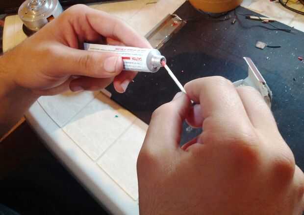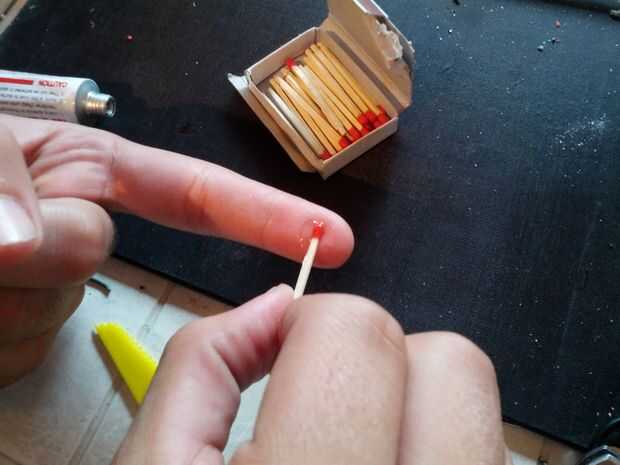 Sumerja la boquilla del partido en el tubo de resina, luego gire suavemente en su dedo índice en cuanto a eliminar el exceso de resina. Recuerde que la resina que se aplica uniformemente en toda la punta en cuanto a mantener completamente impermeable. Lo hay más exceso de la resina es, los intentos más tomaría obtener partido iluminado.