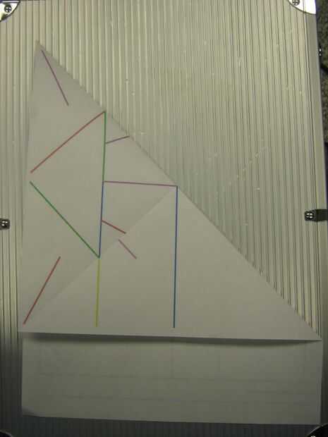 Abrir otra vez el papel y luego dobla el papel para que la esquina superior izquierda reúne al final de 2 veces, y conoce a la esquina superior izquierda el extremo del pliegue 1.