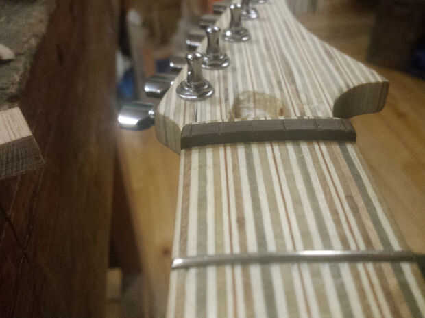 Corte la ranura de la tuerca a la profundidad correcta y el ancho (no cambiar la posición del lado traste)