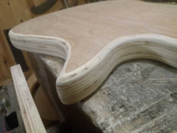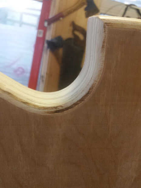 Madera contrachapada la mayoría suele tener huecos en él, ahora es un buen momento para llenar estos. Con aserrín y pegamento o mi método preferido de aplicar pegamento y lijar sobre él mientras el pegamento está todavía húmedo, luego repitiendo hasta lleno y suave, esto sólo funciona para los huecos más pequeños.