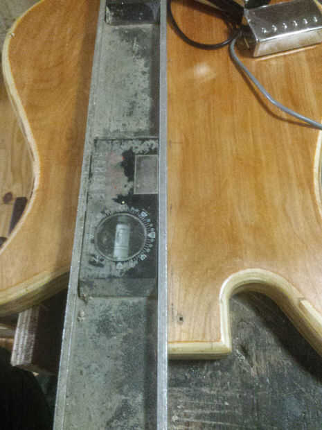 Para colocar el puente toma la posición del puente debe encontrarse. Para la mina, el traste 19 está en 433mm de la tuerca, que el puente debe ser (650-433) 217mm desde el extremo del cuerpo, donde es el traste 19. Pongo la pastilla del puente 50mm centro a centro del puente, se podría poner más cerca o más lejos, un poco más cerca posiblemente hubiera sido mejor.