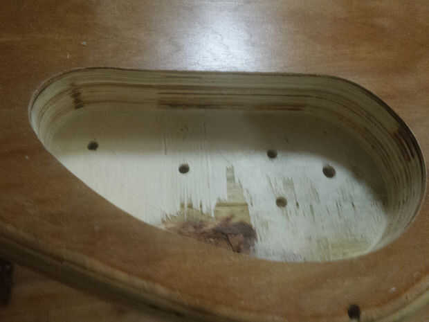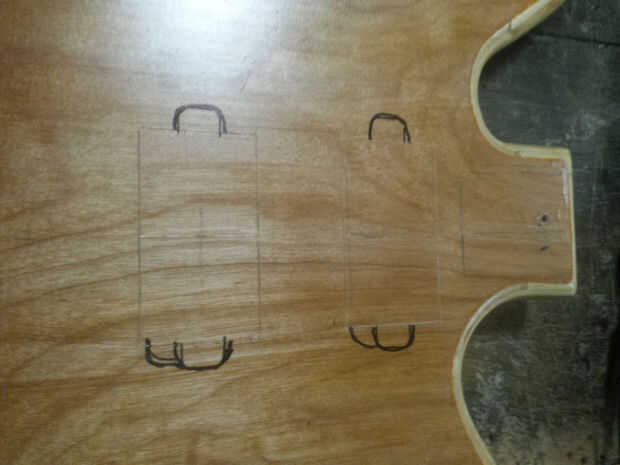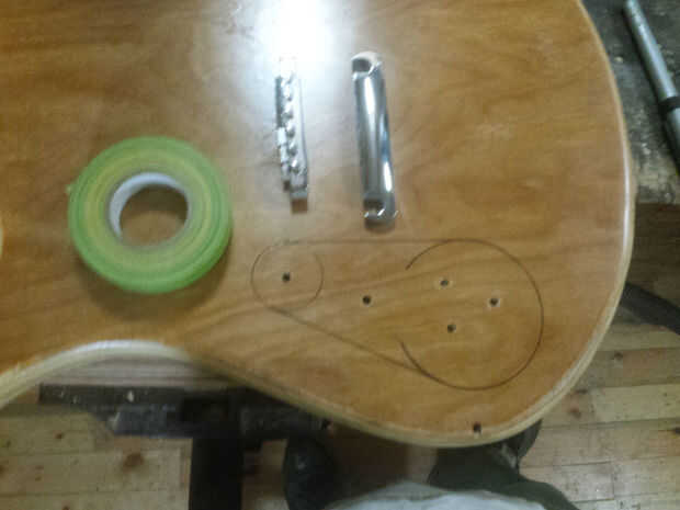 Para el control de las ubicaciones de los controles deben ser marcadas y luego perforar un orificio piloto todo el camino a través del cuerpo hasta una forma de la cavidad la cavidad puede ser diseñada en la parte posterior de la guitarra alrededor de ellos.