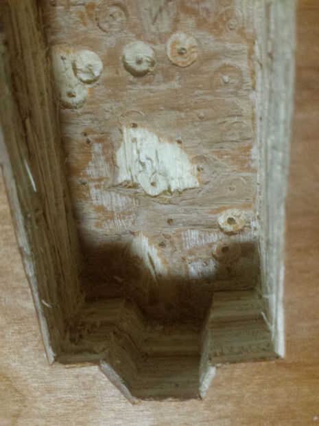 Corte esta cavidad dejando unos 4 mm de espesor de la madera. Esto puede ser difícil de hacer con sólo un cincel.