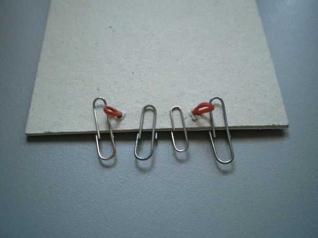 Ahora encola ambas tapas doblando las solapas. Puede necesites ayudarte con clips o pinzas para pegar encima de la goma elástica. Déjalo secar mientras pasas al siguiente paso.