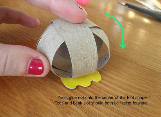 Colocar la bola en el centro de la cartulina pie forma. Dejar ir para comprobar si el juguete es independiente. Si el amigo pájaro no está parado para arriba en su propia, tratar de empujar la bola hacia la parte posterior de la forma del pie.