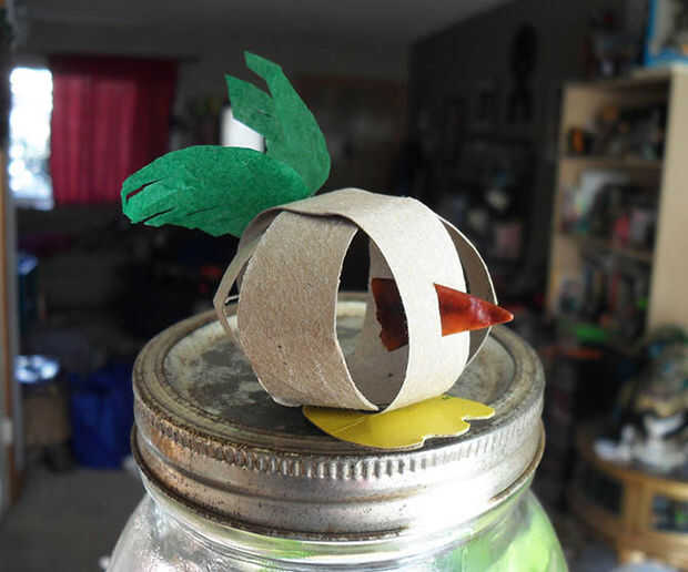 Inserte el extremo despuntado de la punta de pimienta en la ranura de pico que hiciste antes. Si la ranura no es suficientemente grande, cuidadosamente Inserte la cuchilla x-acto y alargan, empujando hacia abajo.