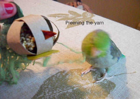 Otra idea interactiva es el compañero de ave con trozos de hilo de la materia , además de un seco tratar. Las aves que están anidando tomará los materiales y construir con ella. Incluso las aves que no son de manera doméstica parecen disfrutar de juguetes con hilos y fibras de acicalarse o yanking él hacia fuera como una especie de juego de.