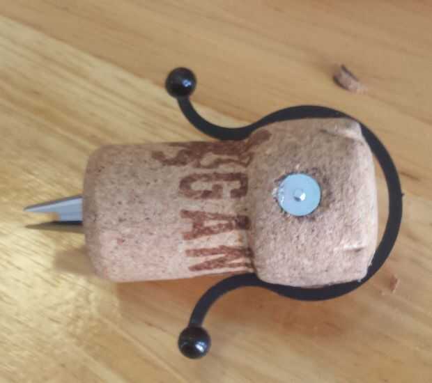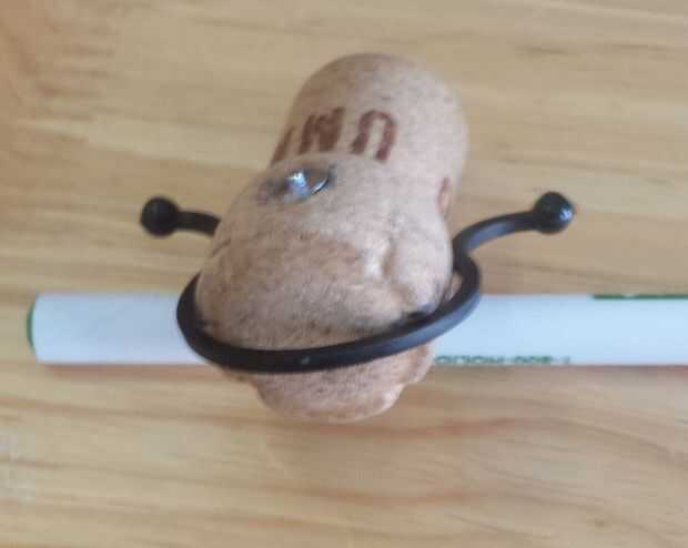 Extiende los extremos de su clip de control de alambre y deslícelo sobre el extremo de la cabeza del corcho. El clip de control de alambre se pega para arriba y no se mezcla con el resto del cuerpo del calamar. Utilice el lápiz para marcar ambos lados del clip donde entra en contacto con el corcho en los bordes superior e inferior de la sección head. Con estas marcas en su lugar retire el clip de control de alambre y utilizar su cuchillo para quitar el material entre las marcas. Desea que el espacio que de tan profunda como el grosor de la pinza de control de alambre.