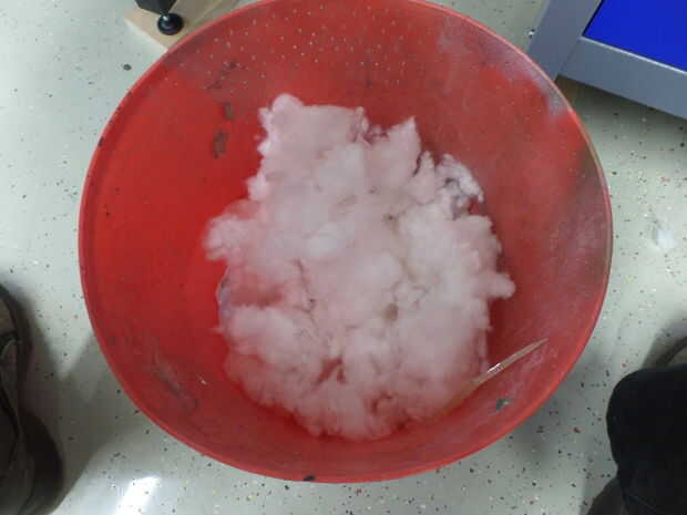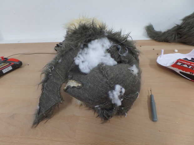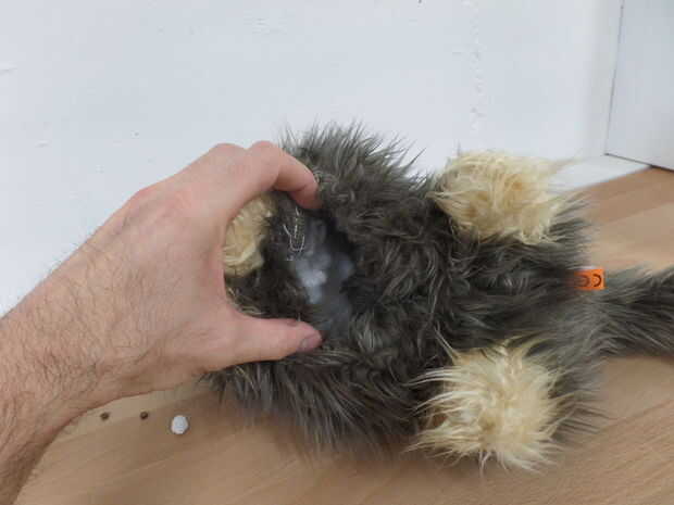 Entonces abrí el perro una mayoría quitada del relleno, por lo que pude ajustar el cuerpo pelado abajo en el perro.