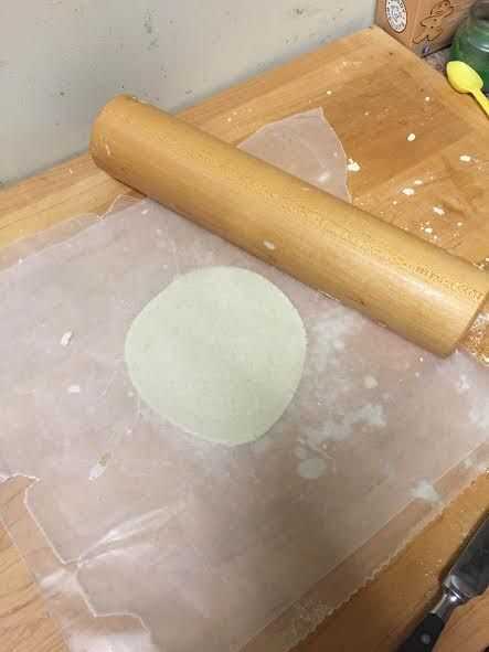 Colocar cada bola entre dos pedazos de papel encerado y luego rodar con un perno de balanceo. Debe ser rodados en sobre círculos planos de 5-6 pulgadas de diámetro.