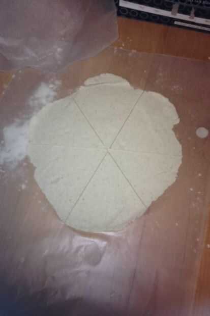 Corte cada desplegado tortilla en 6 porciones triangulares. Corte como cortando una pizza personal pequeña en 6 secciones incluso.