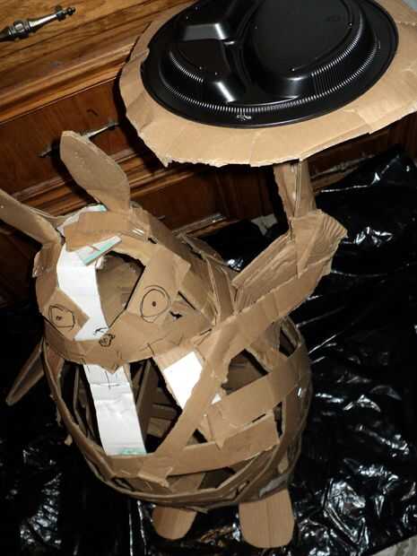 Como se puede ver, quería hacer una forma de esquema general de un Totoro con paraguas. Los detalles que yo añadiría por esculpir con el material de papier maché.