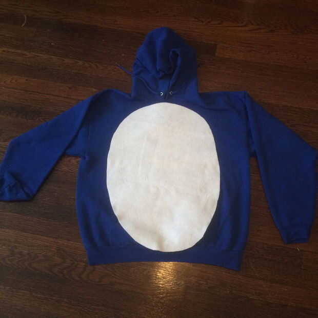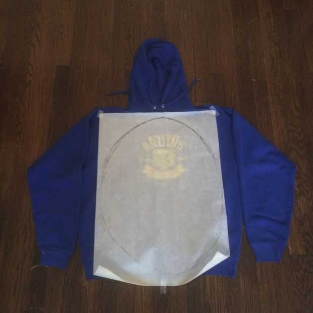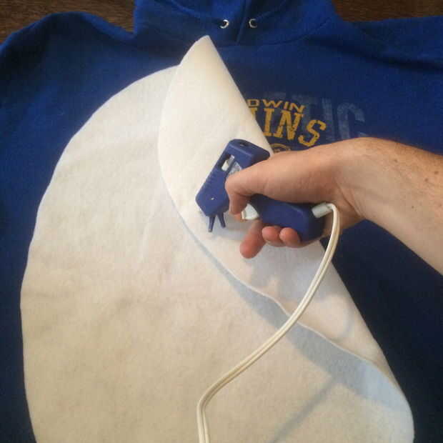4. Aplique pegamento caliente liberalmente en la parte posterior del vientre parche y colóquela plana en la sudadera.