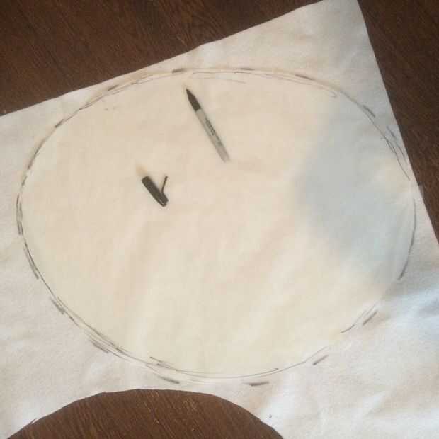 1. Poner un papel de calco sobre la camiseta, dibuja algo parecido a un óvalo, recórtalo.