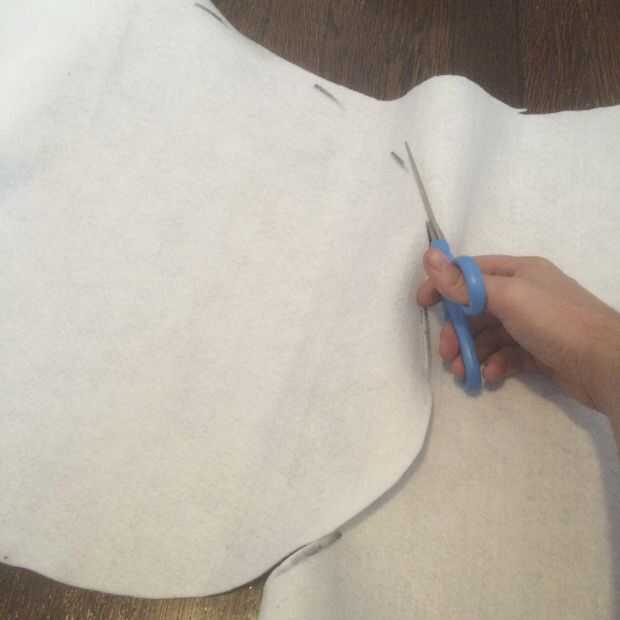 2. Utilice el patrón de papel para marcar la forma ovalada sobre algún blanco fieltro, recortarlo.