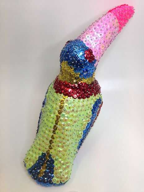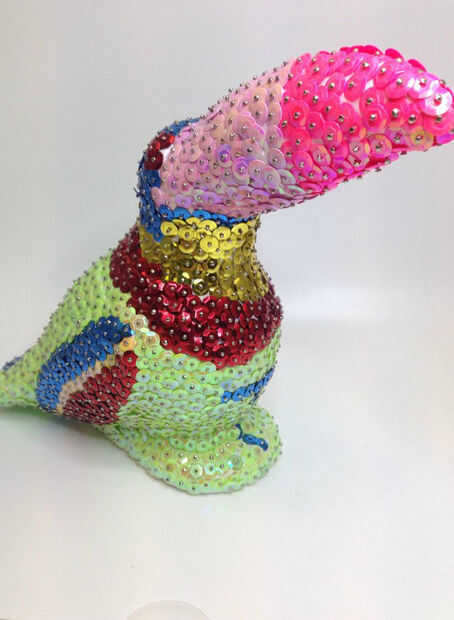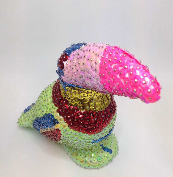 Aquí está mi tucán terminado! Le nombré Tuk-Tuk y estoy muy orgullosa de él. Es muy brillante y se ve precioso en mi dormitorio. Creo que esto haría un regalo muy bonito, o decoraciones para la mesa en una boda!