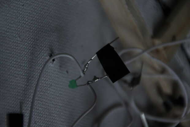 es una buena práctica etiquetar los cables antes de soldarlos juntos así que había marcado el pin negativo de los LEDs con alguna cinta aislante negra.