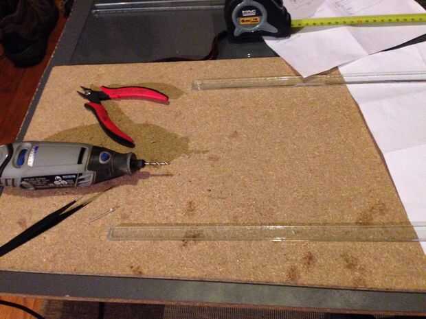 - Un panel de plexiglás de 420 x 720, 5mm espesor llevó a la mayoría de las partes de detección (excepto los sensores y el Teensy porque yo quería que ser inferior).