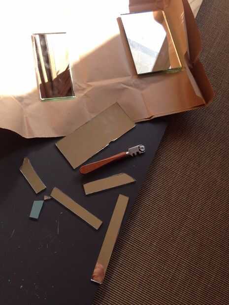 - El espejo reflectante, la tienda de al lado de mi casa no podía cortar menor de 100 mm. Así que compré algunos panel de 100 x 300 y un cuchillo de corte de vidrio. En internet hay un montón de videos para aprender a cortar el vidrio. Todavía no es muy fácil y rompí muchos... es más fácil comprar espejos más pequeños (como 100 x 150), pero no te olvides de comprar más de lo necesario, ya que es difícil no romper ninguna!