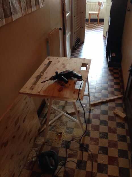 - Una capa hecha con un panel de 10mm de MDF para guardar el control remoto de la TV TV alimentación multi-socket y frambuesa Pi