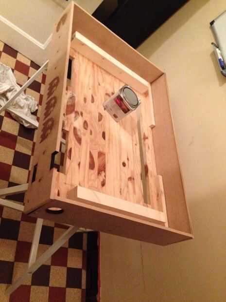 - Usé algunos 18mm madera de pino gruesa para soportar el peso de la TV. Hice varios agujeros alrededor de la zona de ventilación de la TV.