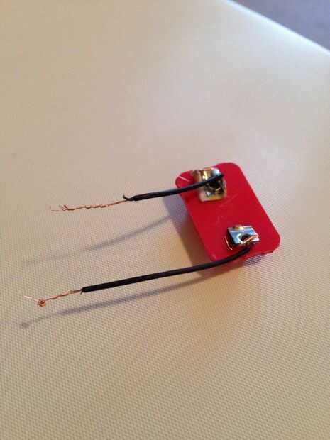 Conectar dos cables en cada terminal en la parte superior de la batería de 9 voltios que apenas despegamos.