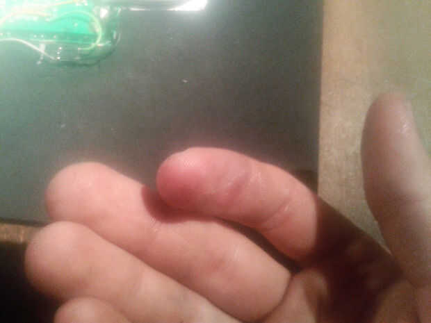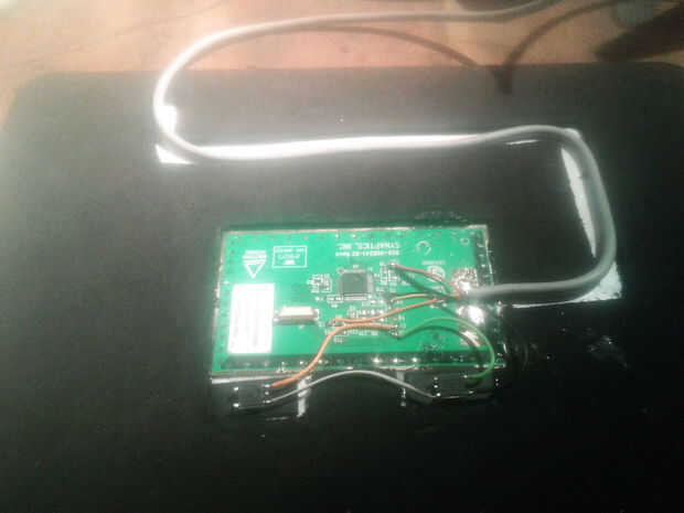 Después de limpiar el touchpad y el agujero con alcohol frotar algunos pegamento se aplica al touchpad y perforar dentro del hoyo. No seguro en el pegamento, de lo contrario puede no el touchpad funciona perfectamente. Si los dedos ven como el mio en foto 3 y 4 que tomó suficiente pegamento). Repita con los botones (y el cable). Ahora soldar los cables de los botones para los pads de soldadura si se les quita. Está casi terminado, probarlo, y puede pegar a la tabla o una placa de madera.