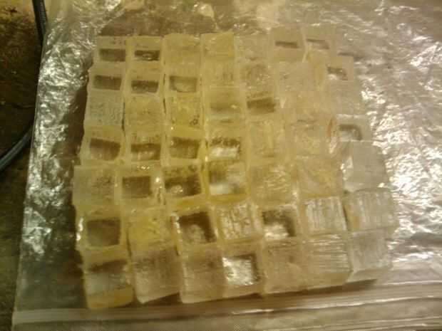 Una vez que tenía un plan, quería verter mi primer siempre fundido con algunos suaves en el caucho de silicón para el molde y el plástico de uretano, he utilizado Crystal Clear (por favor tenga mucho cuidado al usar cualquiera de estos productos... No puedo imaginar qué sucedería si estos compuestos donde conseguir en su sistema. Siempre donde latex guantes, un respirador y gafas.). El error que hice con este molde no fue espaciando hacia fuera los cubos lo suficiente para poder doblar el molde y el pop fuera los cubos. Básicamente hace un ladrillo y tuvo que sacar cada cubo por la fuerza, que no fue fácil.