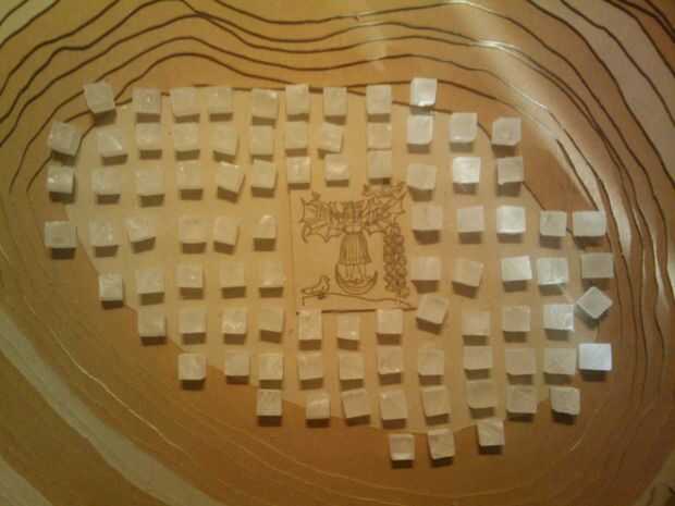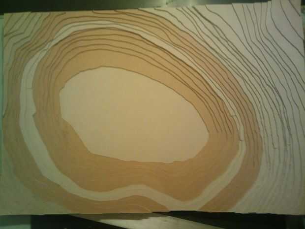 Entonces llamé a la topografía como quería e imprimí y pegadas a hojas de tablero mate, que corte con una sierra caladora de velocidad variable. Pegan las esteras, agregó la transferencia Xerox *, aerosol pintado con una capa muy gruesa de la pintura de lustre, conectado los LEDs tres en serie y la serie en paralelo y pegado todas las luces, electrónica y cubos para colocar.