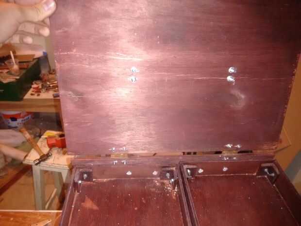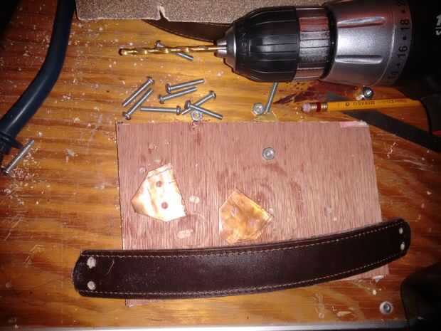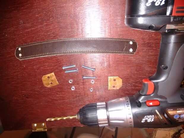 Finalmente los orificios se centraron y perforaron en el panel superior y atornillan a la correa de cuero con el par de protectores de manija en cada extremos.